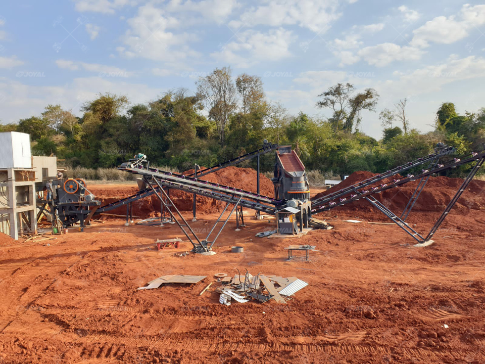 Cette installation de concassage de galets de rivière d’une capacité de 100 tonnes/heure (concasseur à mâchoires + concasseur à cône + laveur de sable) produit des granulats de différentes tailles, notamment S1, 3/8 pouce, 3/4 pouce et G1.