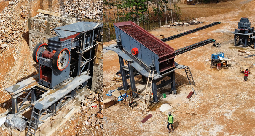 Configuration des équipements : Concasseur à mâchoires + Concasseur à cône + Crible vibrant