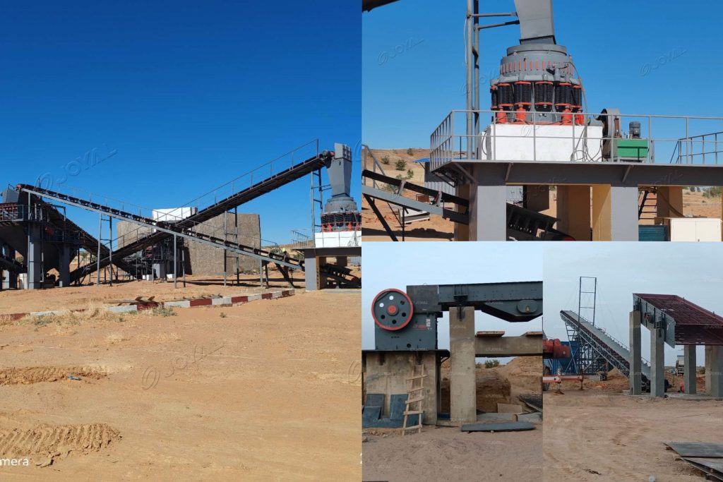 Cette ligne de production utilise une combinaison de concasseur à mâchoires et de concasseur à cône, permettant ainsi au client d’atteindre les objectifs suivants :